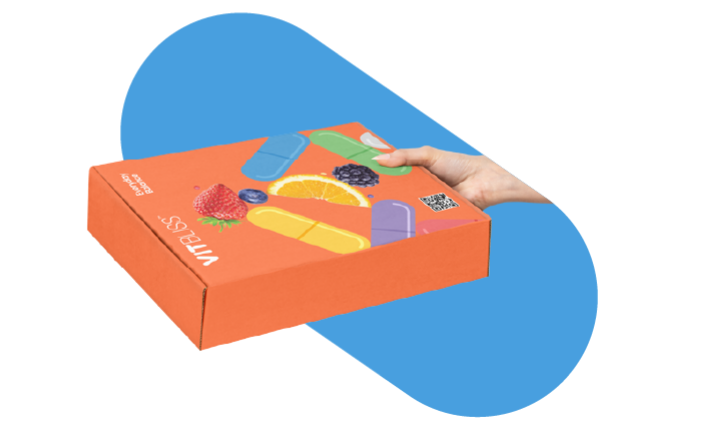 VITBLISS vitamin cards come in convenient multi-dosage cups, ensuring you never forget to take your vitamins daily. Just pop the cup open, and you're good to go!